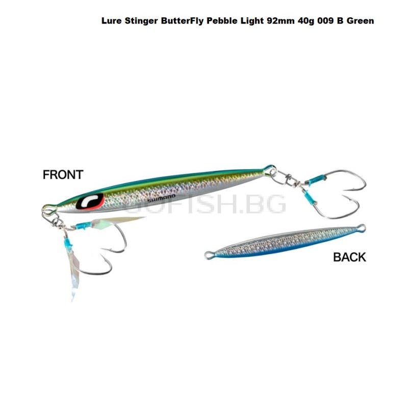 Shimano Stinger ButterFly Pebble е специализиран saltwater metal jig (морски джиг), проектиран за леки и суперлеки slow jigging техники в солена вода. Този джиг имитира слаба плячка, което го прави изключително ефективен за привличане на хищни видове в средни и плитки води.